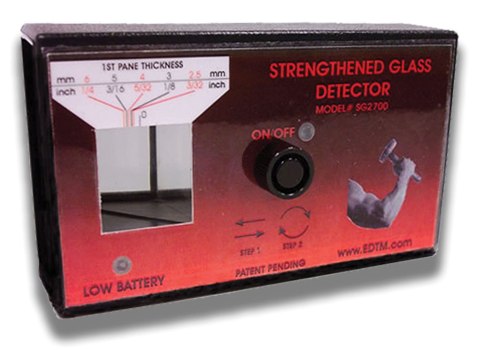 Allows users to confirm if glass has been strengthened. The detector can test single panes of glass or multiple panes in a window at a single time, and from a single side.